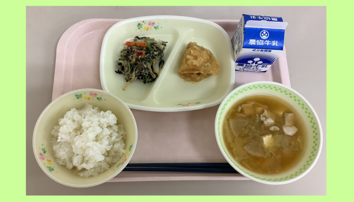 キラッと新潟米☆地場もん献立 ~新発田市~ 2025.12.12 キラッと新潟米☆地場もん献立 ~村上市~ 2025.12.12 キラッと新潟米☆地場もん献立 ~新潟市~ 2025.12.12 キラッと新潟米☆地場もん献立 ~佐渡市~ 2025.12.12 キラッと新潟米☆地場もん献立 ~魚沼市~ 2025.12.12 キラッと新潟米☆地場もん献立 ~新発田市~ Uncategorized 2025.12.12 ごはん 鶏肉の甘酒りんごソース のり酢あえ 新発田のめぐみ汁 牛乳 【使用した地場産物】 新発田市産コシヒカリ、甘酒、厚揚げ、ねぎ、さつまいも、あやめみそ 新発田市五十公野共同調理場