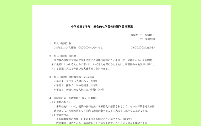 R7年度 中1学級活動「自作弁当の日」に向けて 2026.04.20 R7年度 特別支援高等部2「適塩」を意識した食事の組み合わせを考えよう 2026.04.172026.04.20 R7年度 小6家庭科(保健)「病気の予防」 2026.04.172026.04.20 R7年度 特別支援高等部2特別活動「社会で働けるおとなになるために、栄養バランスのとれた食事を考えよう」 2026.04.172026.04.20 R7年度 中学全学年家庭科 選択 生活の課題と実践 2026.04.172026.04.20 R7年度 小5総合学習 大好きにいがた体験 〇〇〇〇の人やくらし 小学校第5学年 2026.04.172026.04.20 R7年度 小学校5年生_総合的な学習の時間「大好きにいがた体験○○の人やくらし」