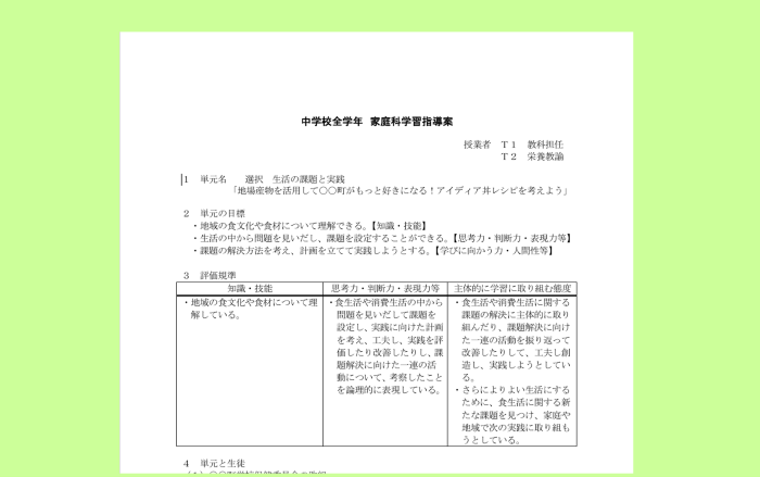 R7年度 中1学級活動「自作弁当の日」に向けて 2026.04.20 R7年度 特別支援高等部2「適塩」を意識した食事の組み合わせを考えよう 2026.04.172026.04.20 R7年度 小6家庭科(保健)「病気の予防」 2026.04.172026.04.20 R7年度 特別支援高等部2特別活動「社会で働けるおとなになるために、栄養バランスのとれた食事を考えよう」 2026.04.172026.04.20 R7年度 中学全学年家庭科 選択 生活の課題と実践 2026.04.172026.04.20 R7年度 中学全学年家庭科 選択 生活の課題と実践 中学校第1学年 2026.04.172026.04.20 「地場産物を活用して○○町がもっと好きになる!アイディア丼レシピを考えよう」 R7年度 中学校全学年_家庭科「選択 生活の課題と実践」